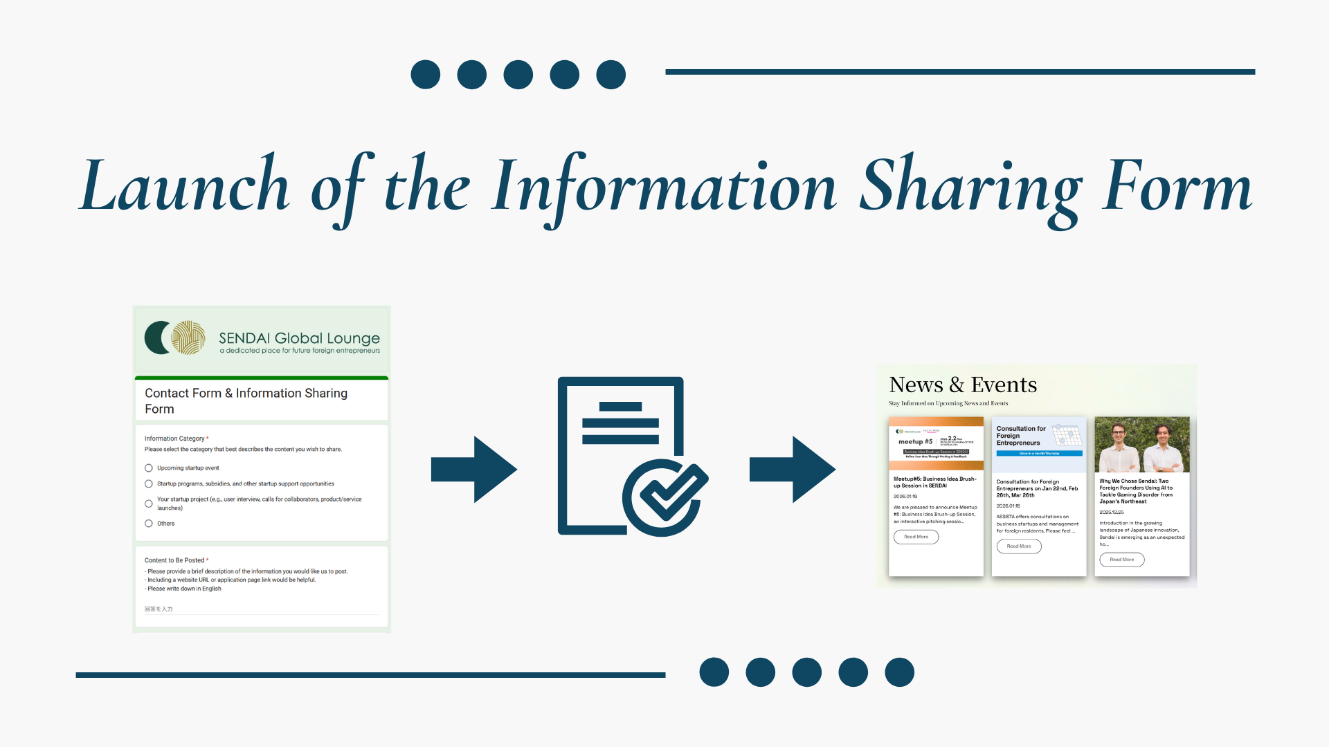 Help Us Grow the Startup Community: Share Your Information on SENDAI Global Lounge Website✨Do you have any startup-related information you would like to share with visitors to the SENDAI Glob... -